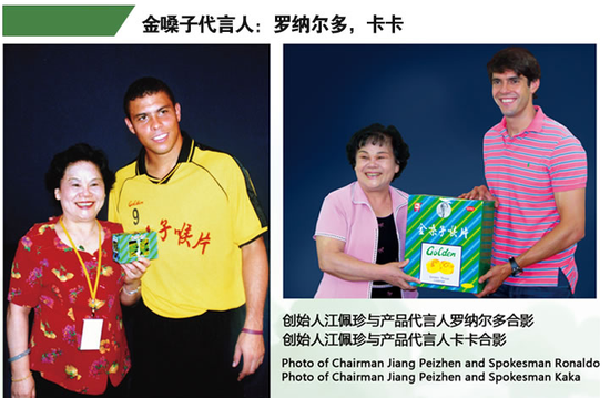 1998年底,金嗓子公司产值逼近2个亿,成为广西企业50强,跻身全国制药企业的100强。2003年夏天,罗纳尔多跟随皇马来中国踢商业比赛,江佩珍邀请这位当时最火的足球明星为自己产品拍广告。当时,罗纳尔多神秘失踪一小时吃了一顿饭——没想到是给金嗓子“拍”广告,日后因此闹得沸沸扬扬。