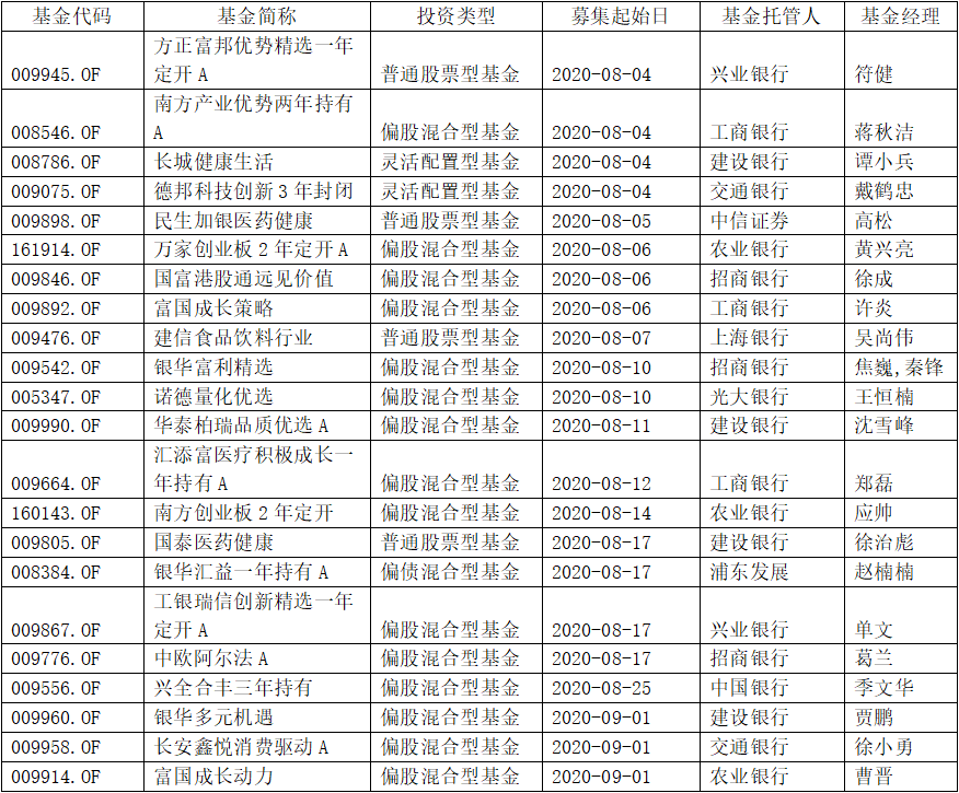 目前权益基金是新基金发行的主力,本周进入首发的主动权益基金达到20只,基本都是混合型和股票型基金,这也是非常密集的发行潮。后续还又多只权益基金进入发行期。