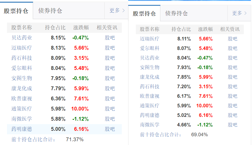 梦圆管理的2只基金持仓集中度偏高,前十大重仓股的持仓占比合计均在70%左右,都是清一色的高价医药股,基本上均属于目前热度极高的大A抱团股。前十大重仓股在梦圆操盘期间集体下跌,跌幅均超10%,其中爱尔眼科(57.200, 2.97, 5.48%)、贝达药业(99.850, -0.47, -0.47%)、药石科技(145.550, 4.44, 3.15%)、欧普康视(77.480, 5.48, 7.61%)、通策医疗(231.000, 21.00, 10.00%)的区间跌幅更是超过20%。