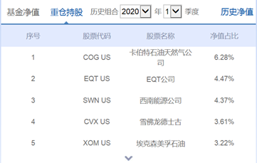 4月17日的基金的净值是0.2238,截止3月31日的规模是21.91亿元。基金基本的资产配置是美国的石油公司股票。年报显示持有美国石油公司股票59只,包括埃克森美孚这样的巨头,也有像不久前申请破产保护的怀丁石油公司。诸多的页岩油气开发公司的股票都有配置。显然,这个基金是通过配置石油公司来间接配置“油价”。显然,打2014年油价暴跌以来,页岩油气公司乃至整体上游的暴利时代是过去了。而今年油价的暴跌,再次沉重打击了美国页岩油公司,股价都是不忍赌的。有人说,不是美国的上游公司会套保么?但是,像埃克森美孚这样的巨头是不套保的,小的公司套保可能也不是简单的用期货空头、买入看跌期权这样的方式去做,很多做机构性套保,包含着复杂的期权头寸组合,保油价的一节而不保全部。但是,也不是说这种资产配置做法就不可取,经过一轮淘汰,生存下来的公司在未来市场油价得以修复后,也许效益就能大幅提高,毕竟现在的基数很低了。