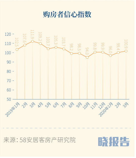 随着房价上涨的,还有购房者的信心指数。2020年一季度以来,购房者信心指数已经缓慢上升。
