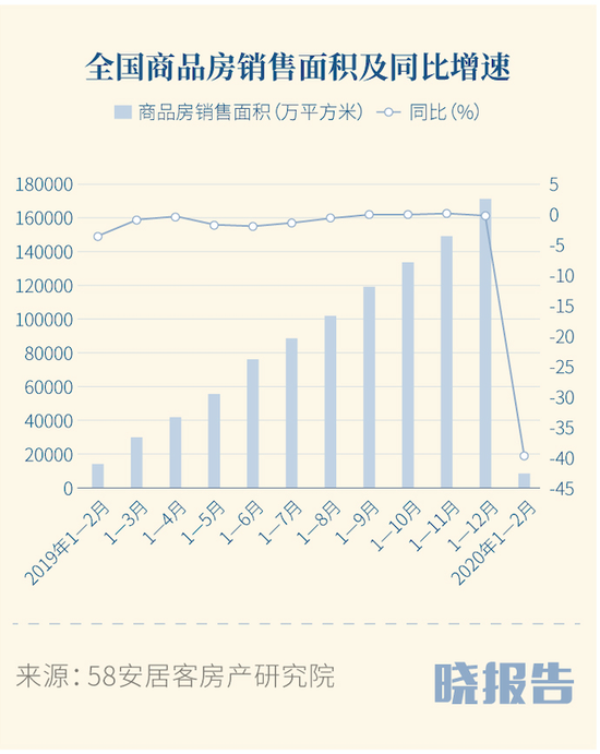 不可否认,受疫情影响,楼市销售数据下滑。那到底下滑了多少呢?报告显示,1—2月我国商品房销售面积8475万平方米,同比下降39.9%,销售额8203亿元,下降35.9%。