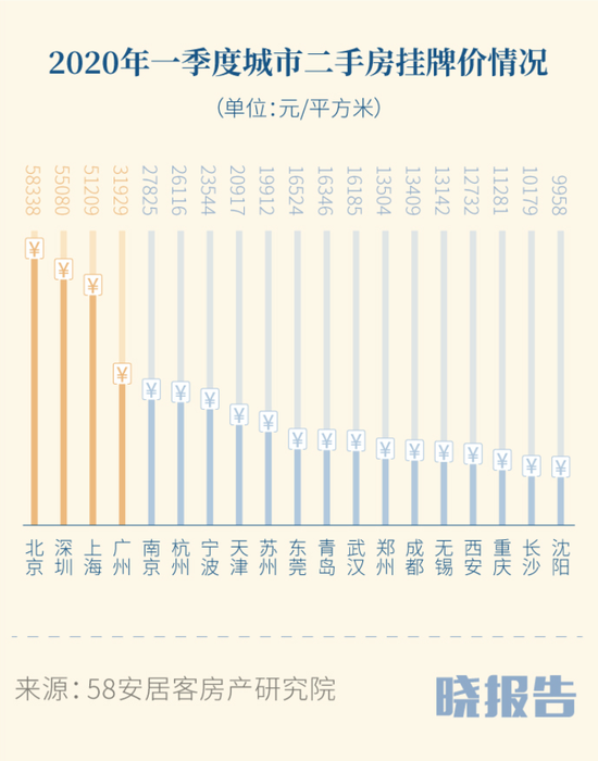 此外,二手房挂牌价也在上涨。2020年一季度,上海和深圳二手房挂牌价均突破了5万元/平方米,价格同比上涨3.6%和2.4%。值得注意的是,宁波、无锡、苏州等热点二线城市的二手房挂牌价同比涨幅明显,均在15%左右。