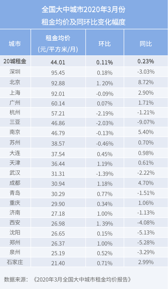 虽然整个一季度租金稍有下滑,但随着3月复工复产率提高,部分城市租金开始上涨。