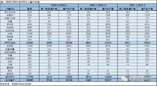 第二阶段的减产协议中,OPEC承担487万桶的减产任务,非OPEC承担281万桶的减产任务,合计减产768万桶,较第一阶段减产协议下降202万桶;第三阶段的减产协议中,OPEC承担365万桶的减产任务,非OPEC承担211万桶的减产任务,合计减产576万桶,较第一阶段减产协议下降394万桶;