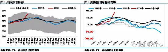 从美国原油基本情况上来,在原油库存连续四周出现了1000万桶以上的增幅之后,上周的数据有所好转,商业原油库存仅仅增加900万桶,低于前值,更低于API的原油库存数据。但是从绝对量上来说,当前的原油库存总量已经接近历史高位,倘若本周商业原油库存增幅在700万桶以上,则将会超过2017年创造的5.34亿桶的历史峰值!并且从原油库存的年增幅上来看,当前的增速是历史上从未有过的,这种情况并未出现好转。库存对于供需调节的作用可以比作是蓄水池,在供应过剩时,库存将会容纳一部分过剩的原油;在供应不足时,库存也将会释放一部分原油补充需求。但一旦蓄水池被填满,市场将会出现“决堤”,原油价格自然将会受到极大的冲击,因此我们寄希望于美国需求能够稳步回升,供给端能够迅速的自然出清。