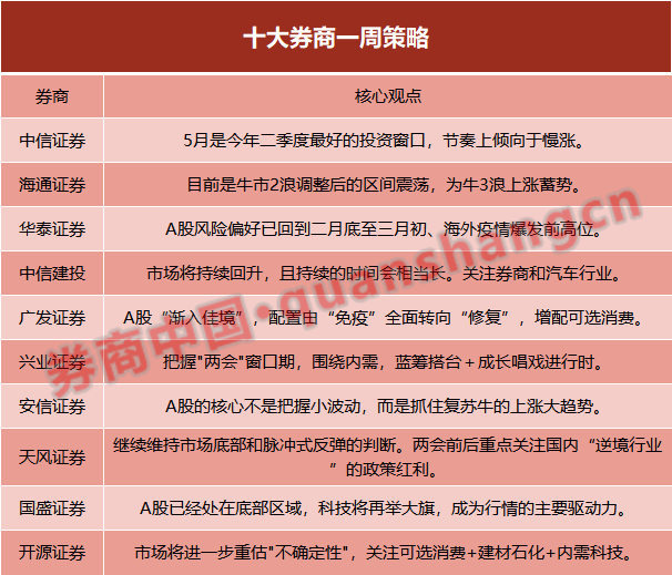 5月外围扰动因素有限,抓住5月上涨的时间窗口更为重要,无需过多关注涨速和空间。中信证券依旧认为5月是今年二季度最好的投资窗口,节奏上倾向于慢涨,配置上依旧建议以新旧基建及相关科技龙头(5G、云计算、新能源车等)为主线,同时建议逐步布局前期受疫情压制的优质滞涨板块。