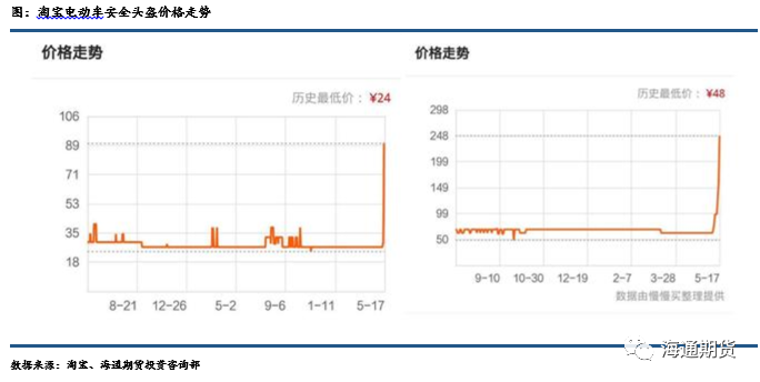 根据2019年6月国新办新闻发布会安全生产综合协调司司长公布的数据,从近年来的情况看,中国电动自行车发展非常迅猛,据初步统计,目前电动自行车的社会保有量已经超过了2.5亿辆。以上海12.5%的头盔使用率作为全国头盔使用率估计,那么我国有头盔需求缺口超过2亿。由于此次政策下达到落实的时间较短,根据各地具体落实政策来看,4月下旬提出,6-7月即开始实施纠正教育或查处,短期头盔需求激增,各大电商平台出现翻倍式增长,朋友圈也开始炒作头盔。目前夏季头盔价格上涨2到3倍,冬季头盔价格上涨3到4倍,京东商城不少头盔已无货。