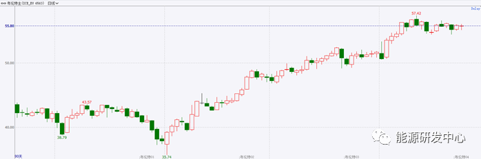 【1】WTI主力原油期货收跌0.02美元,跌幅0.04%,报52.61美元/桶;布伦特主力原油期货收涨0.12美元,涨幅0.22%,报55.64美元/桶;INE原油期货收涨0.51%,报331.9元。