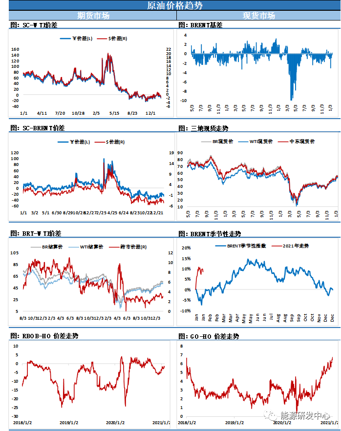 【2】巴克莱调高2021年油价预估,惟亚洲疫情或打压短线市场;受寒冬(特别是亚洲)燃料需求增加及美元走弱等“短暂因素”牵动,巴克莱周一上调2021年油价预测。巴克莱维持对2021年下半年油价看多的预期,但表示亚洲新冠病例增加的风险浮现,以及上述短暂因素消退,可能导致油价短线拉回。巴克莱表示,将2021年油价预估上调2美元。目前预估西德克萨斯中质油(WTI)均价每桶52美元,布伦特原油均价每桶55美元。巴克莱指出,“尽管新冠疫情冲击对出行需求产生巨大影响,至少目前似乎并未给石油供需连续性造成实质影响。”沙特1月初意外自愿额外减产。然而巴克莱不认为这将延续到第一季之后,反之预测石油输出国组织及其盟友(OPEC+)第二季将增加供应150万桶/日,下半年再增150万桶/日。