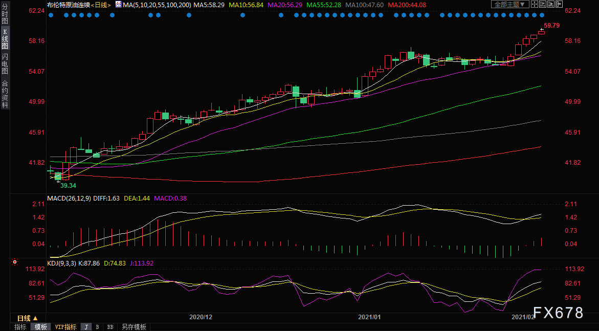 (布伦特原油主力合约日线图)
