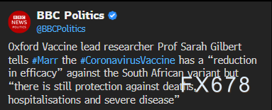 领导阿斯利康疫苗试验的牛津大学教授Sarah Gilber表示,“更多数据”将很快发布。她在英国广播公司(BBC)的Andrew Marr节目上说,目前的疫苗可能不会减少感染南非变种病毒的病例数,但会减少该病毒导致的死亡,住院和重症病例。