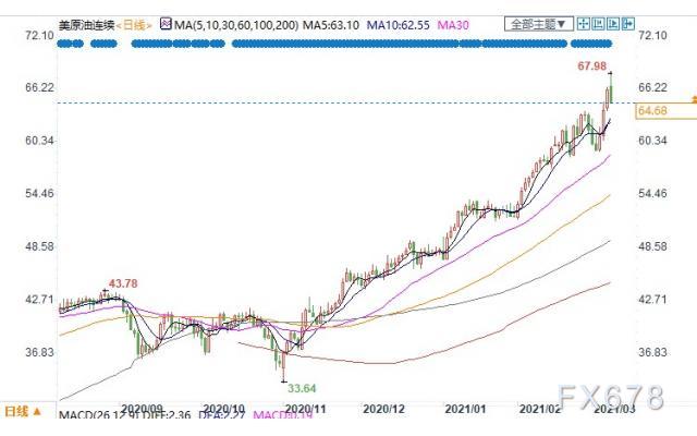 上周石油输出国组织及其盟国决定4月基本维持减产规模不变。由于OPEC+限产以及经济复苏提振需求前景,今年迄今油价涨幅已超过30%。