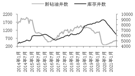 库存井消耗速度大于新钻井建设速度。由于资本支出收缩,美国当前以消耗库存井为主,新钻井数量增幅和增速都较为缓慢。截至2021年6月,新钻井数量为549口,较2020年8月的293口增加了255口,月均增幅为25.5口;库存井数量为6252口,较2020年6月的8965口减少了2713口,月均降幅为226.1口,且各区域油井投产率均超过100%。受限于资本支出的缩减,美国页岩油企业即使在当前高油价下,也难以出现产量大幅扩张的情况。