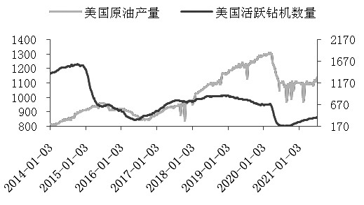 当前,美国原油产量在1150万桶/日以内,活跃钻机数量缓慢增加至375部,自2020年8月14日以来呈周均4.21部的增幅。整体上,页岩油企业资本支出受限,库存井消耗速度大于新钻井增加数量,叠加拜登主张推行绿色能源,美国原油产量短期内即使是在高油价下也不会大幅扩张,产量相对稳定。