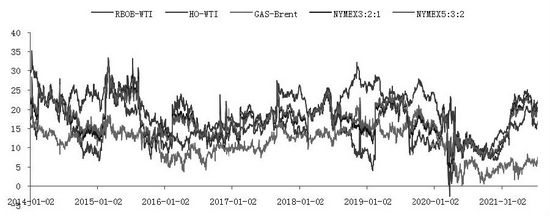 外盘成品油裂解价差走阔,汽油裂解价差最高上行至25美元/桶,近期维持在20美元/桶上方;取暖油裂解价差表现也相对较好,维持在16美元/桶附近;柴油裂解价差表现相对较弱,但重心也在上移,当前在5—8美元/桶徘徊。