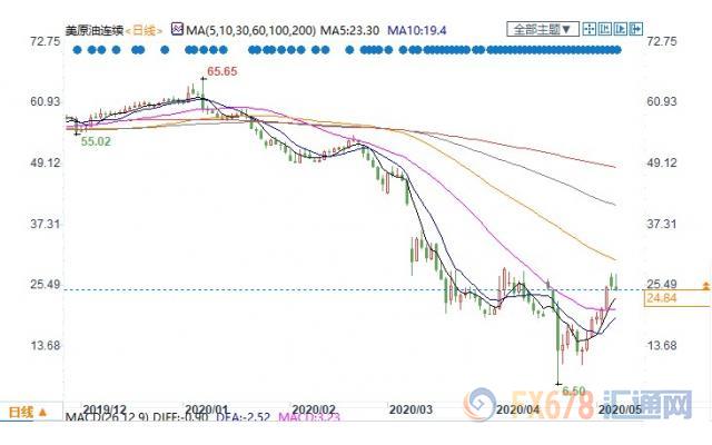 美国WTI 6月原油期货电子盘价格周四(5月7日)收盘下跌0.78美元,跌幅3.04%,报24.84美元/桶。油价周四下跌,全球供需担忧抹去了早些时候沙特上调官方原油销售价格和中国上月出口意外增长带来的涨幅。