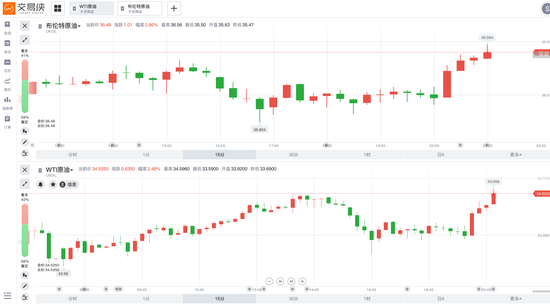 北京时间5月26日晚美股盘前,WTI原油期货日内涨超4%,现报34.73美元/桶,布伦特原油涨超3%,报36.65美元/桶。