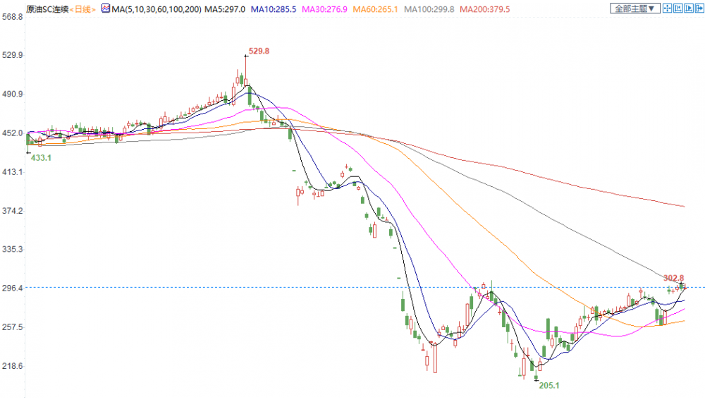 上海原油主力合约SC2008,以298.6元/桶收平。全部合约成交212503手,持仓减少2485手至146446手。主力合约成交153205手,持仓减少1476手至51311手。