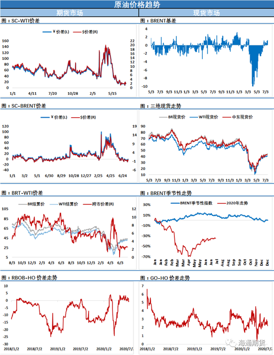 【1】WTI 美国8月原油期货收涨0.21美元或0.52%报40.80美元/桶。布伦特9月原油期货收涨0.14美元或0.32%报43.28美元/桶。上期所原油期货主力合约SC2009合约上涨0.91%,报299.6元/桶;