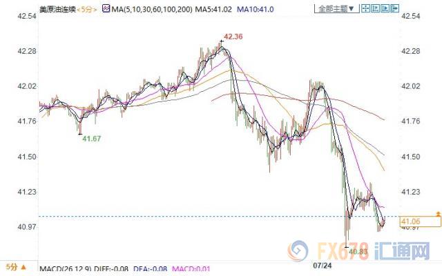 与此同时,ICE布伦特9月原油期货电子盘价格收盘下跌0.95美元,跌幅2.14%,报43.34美元/桶。