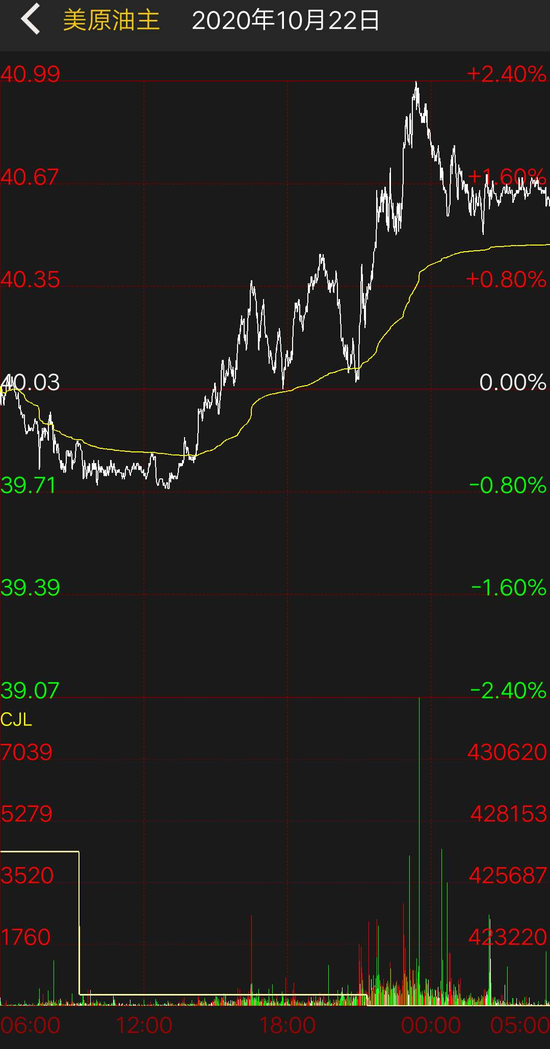 国际油价周四先抑后扬。截至周四收盘,NYMEX WTI原油期货12月合约收于40.64美元/桶,涨幅为1.52%;ICE布伦特原油期货12月合约收于42.46美元/桶,涨幅为1.75%。