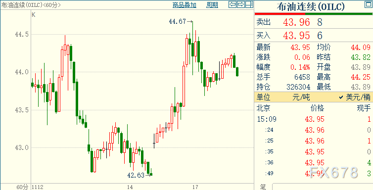 北京时间15:10,NYMEX原油期货上浮0.12%至41.39美元/桶;ICE布伦特原油期货上涨0.30%至43.95美元/桶。
