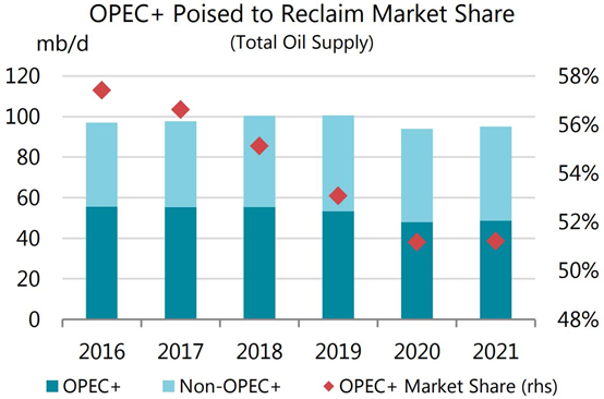 1月19日路透报道,国际能源机构IEA认为受疫情影响,上半年石油需求修复有阻力,下半年在疫苗更多普及以及刺激政策发力的推动下将有较好修复。机构认为“边界封锁、社交隔离措施、社交停止….将继续制约石油需求,直到疫苗能够广泛使用,大概率得到下半年”。鉴于疫情的态势,机构月报对1季度需求和全年需求分别下调了58万桶/日和30万桶/日。供应和需求整体上都继续修复,主要产油国的减产继续推动全球的油品去库,预计2021年的库存高点在5月。预计下半年的需求增长情景下,市场需要更多的石油。今年欧洲和亚洲的冷冬和欧佩克的减产推动了眼下的油价上涨,但美国页岩油产量预计将维持目前水平。预计欧佩克+的市场份额在自2016年被美国页岩油蚕食后将有所反弹。